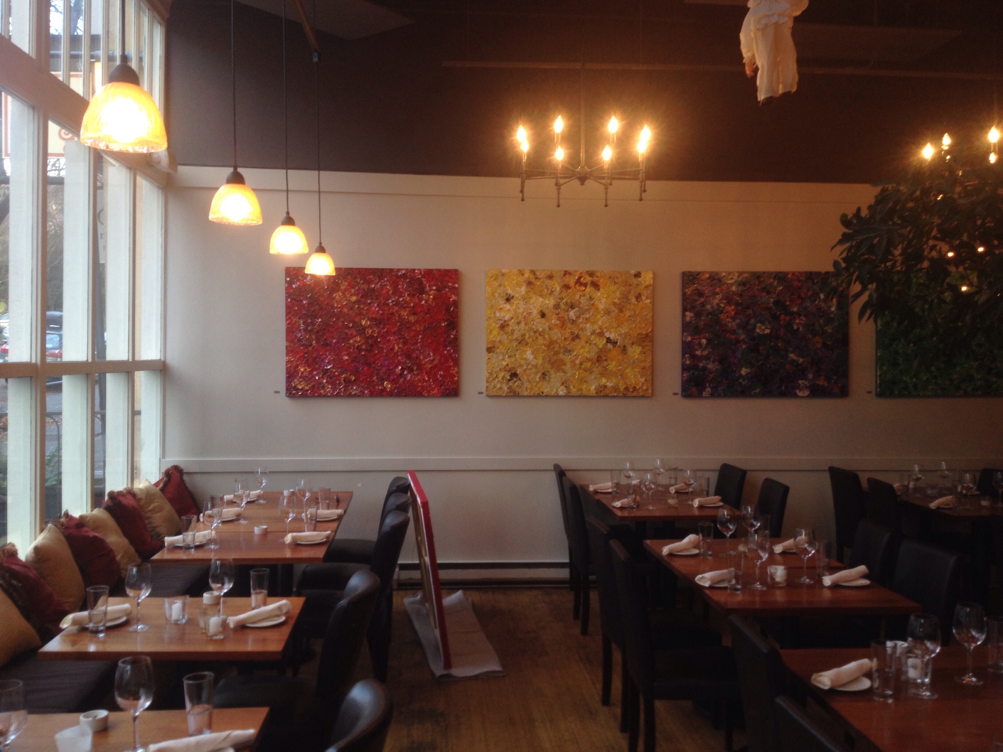 Here at Agrodolce, getting ready for the buyer to pick up Red Flowers #1. Now #2 is in its spot. I have 4 more paintings I need to make for Agrodolce. It’ll keep me busy for another 4 weeks.