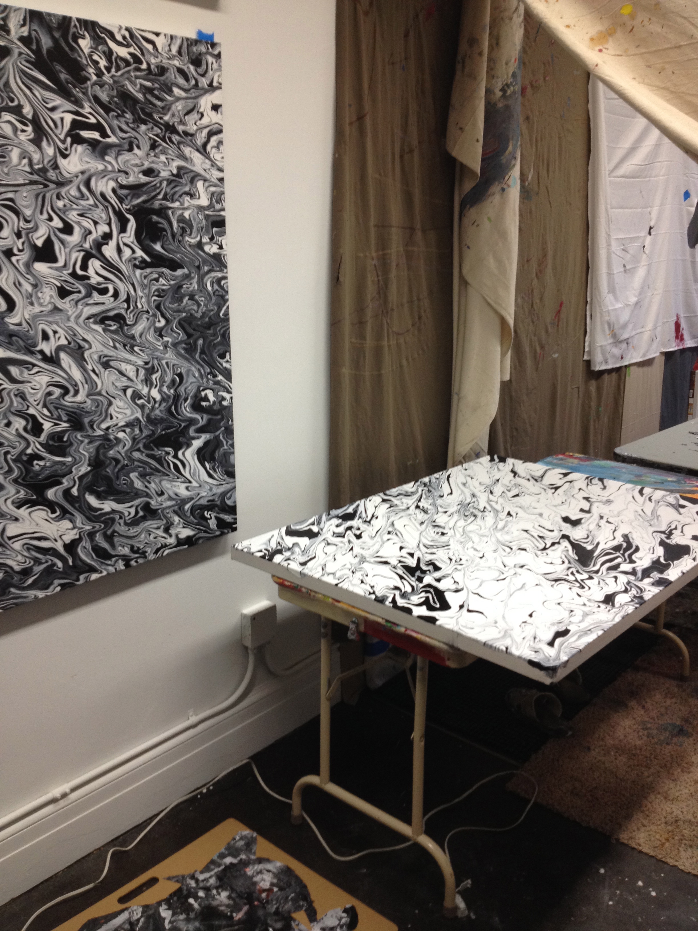 This is kind of a pinnacle of my Colorstretch technique. I will be creating five Colorstretch pieces that are 36″x48″, the largest ever. This is really exciting. Two will be chosen and will be hung at Agrodolce Restaurant in Fremont, Wa. The vision is Black on White/White on Black and vice versa. Two of each of those combinations will be made. The fifth is a piece, that if it works, will solidify a reference made about my art. It will be quite the challenge and much fun, creating these fantastical eye-flow paintings which I call Colorstretch.