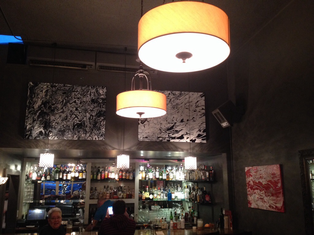 All three of my techniques are represented now at Agrodolce. I have 12 paintings on display indefinitely. I’m honored to be a part of Maria Hines restaurant. Stop by and have delicious certified organic Sicilian cuisine along with a cocktail. Bon Appetite!