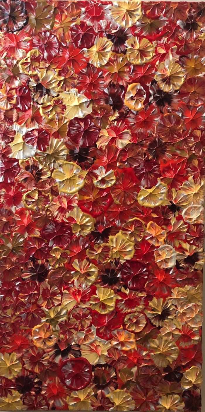 Here Is a nice shot of my medium size Fall Flowers, I am creating 3 different sizes in similar colors. It’s for sale, reach out to me for pricing!