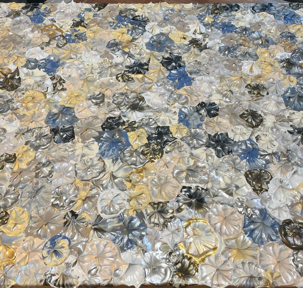 Here is a peek at my commission. It is still drying. I will be spraying it next week, then I will get to hang it. At that time, I should be able to get a better picture.
