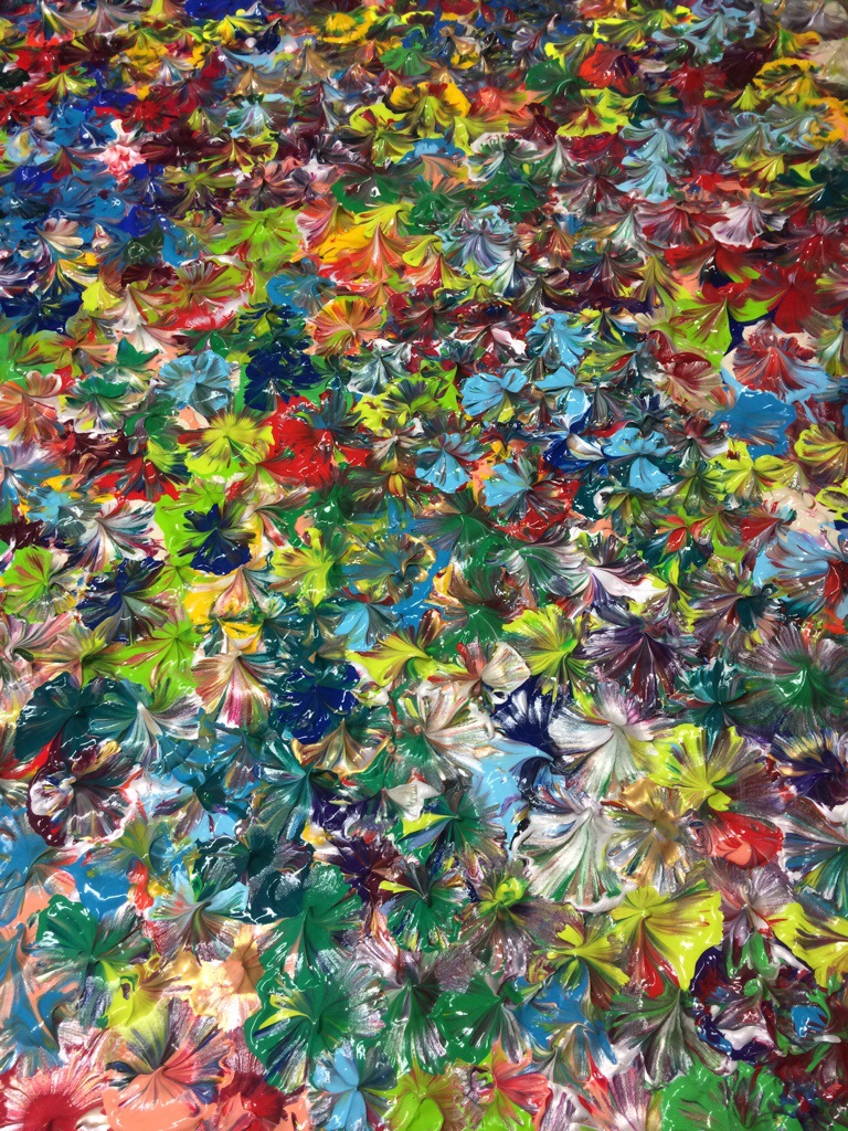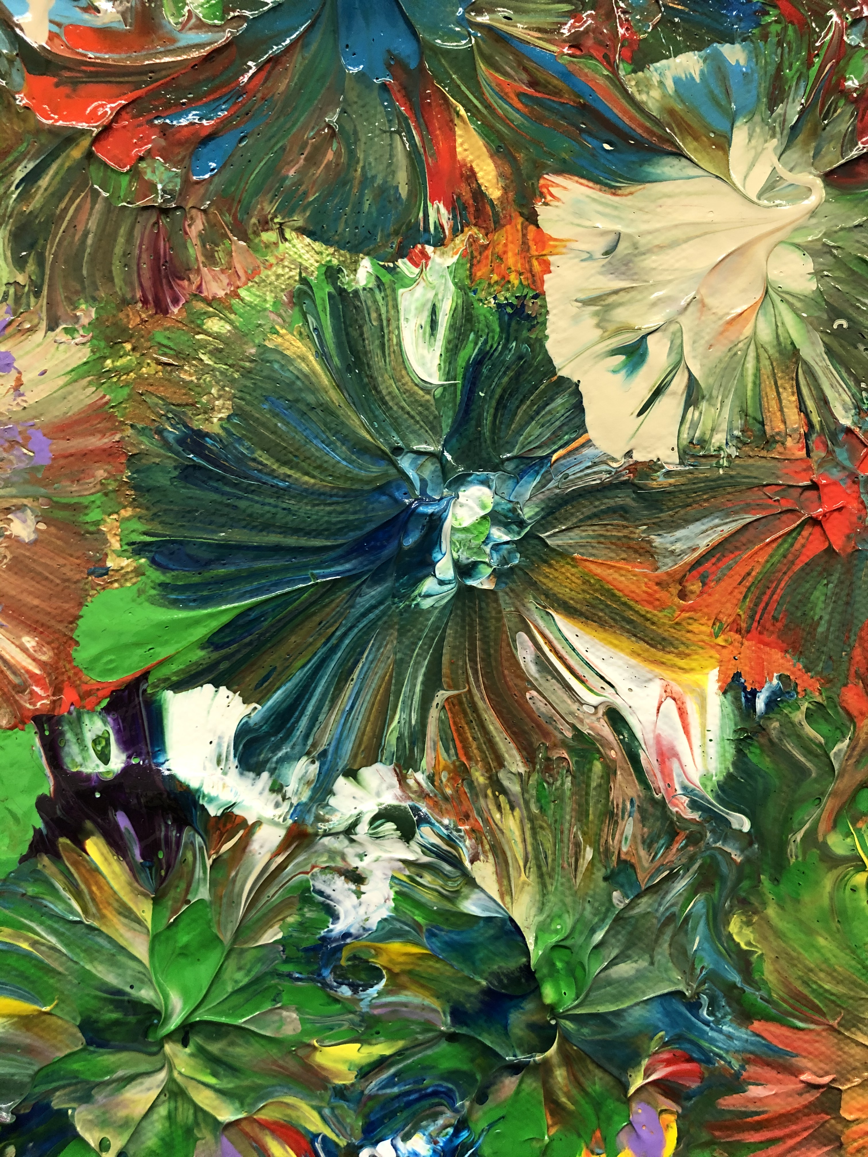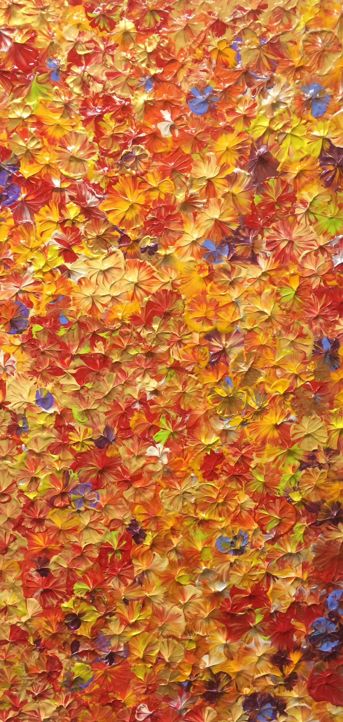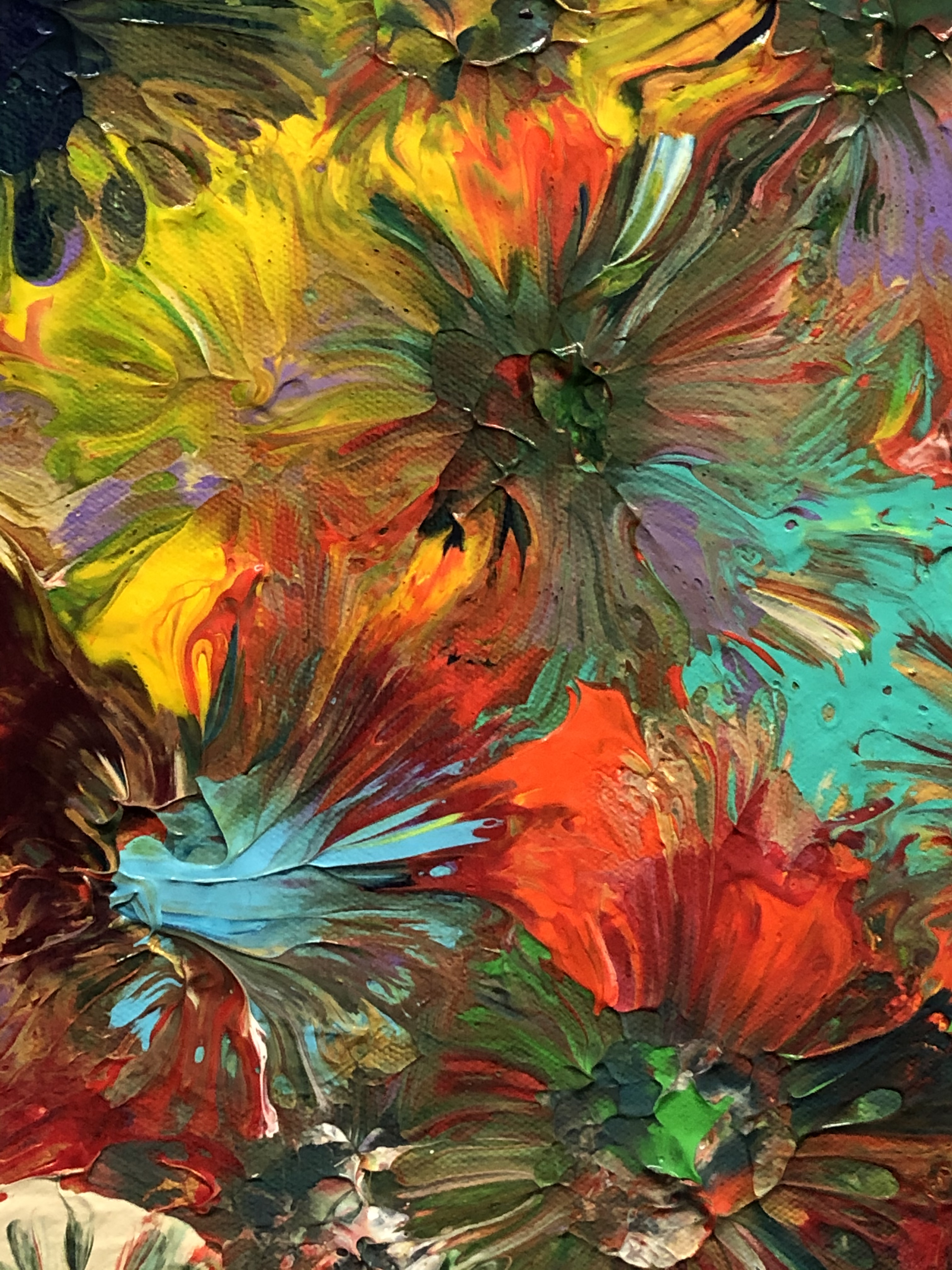 This technique started all the way back in 2006, which was different than the Colorspace and Colorstretch styles I had been working with up to that point. By then I could place my paintings into three separate categories, based on what’s on the surfaces. I started out small, then worked up to a larger piece, a piece that was gifted to a friend, but it was a technique that I wanted to keep playing with. Over the years I have made several (less than 10) of this style in various sizes. Those were all gifted as well, so I really can’t recall first hand what my style looked like back then, which is the progression to which it is today. Back in 2012, Maria Hines, my dearest friend, asked me to create paintings that would live in her third, certified organic restaurant, Agrodolce, in Fremont Wa. I said yes, and four 36″ x 48″ and two 48″x 60″ (the largest surface I have ever painted) used to reside there. They hung 6 years there. Over that time the painting technique evolved into highly textured paintings.