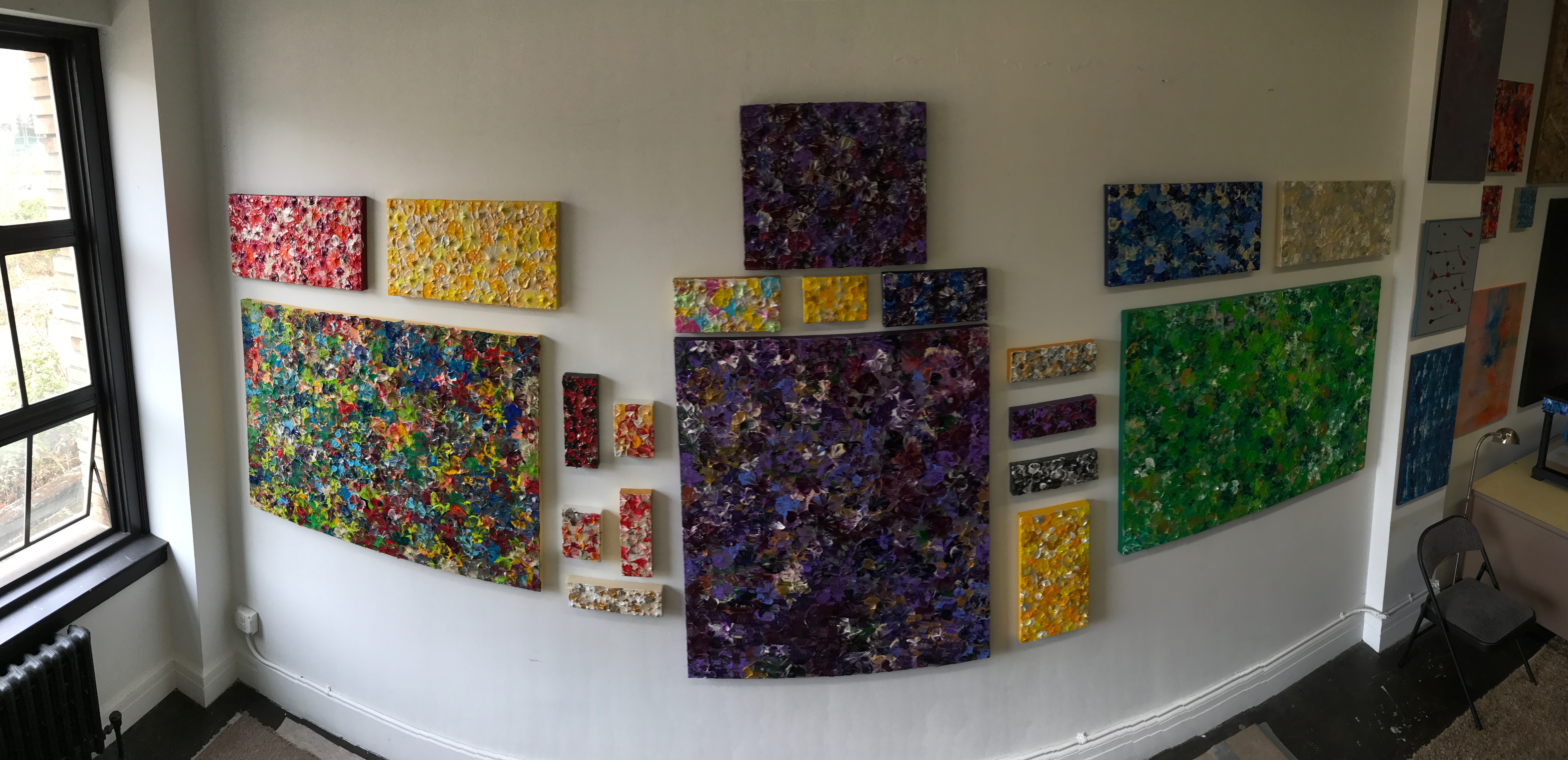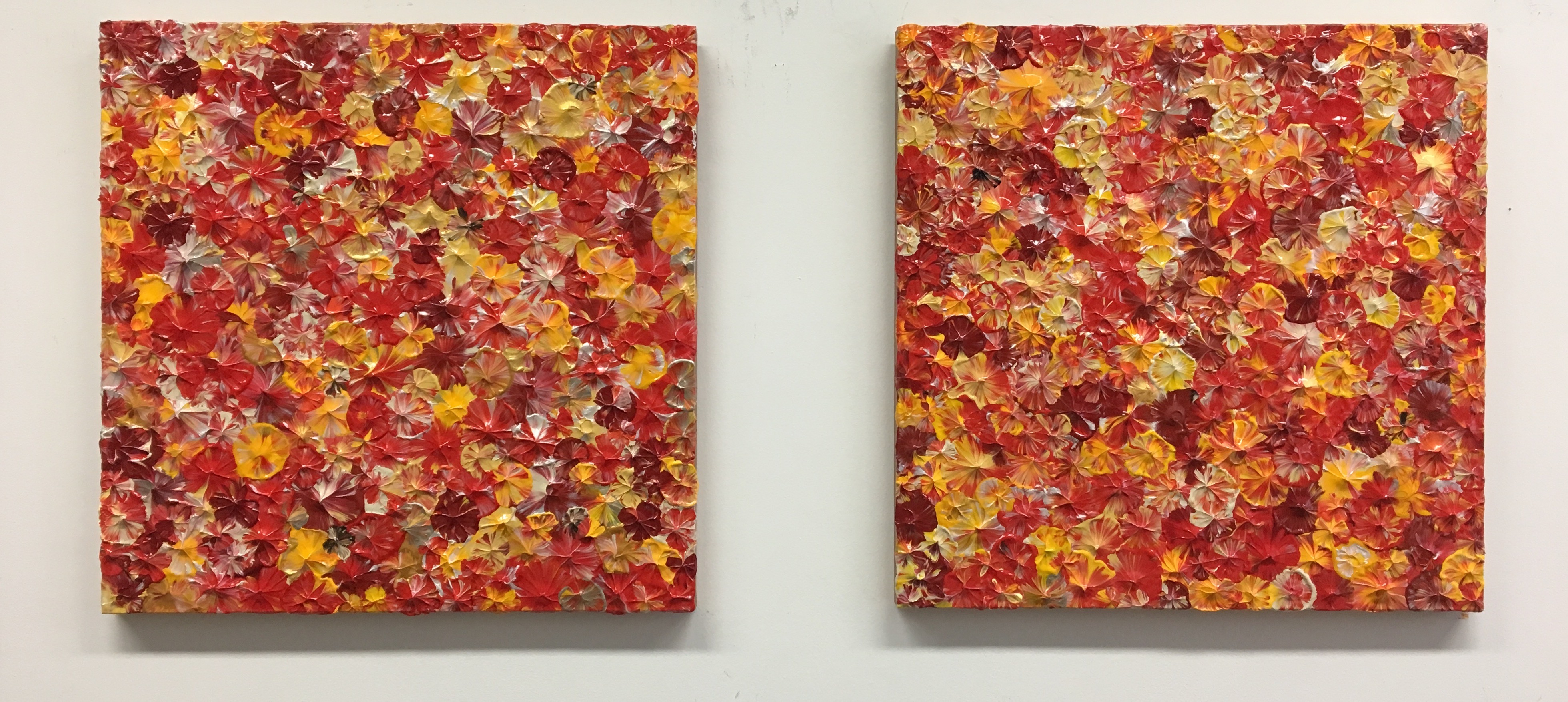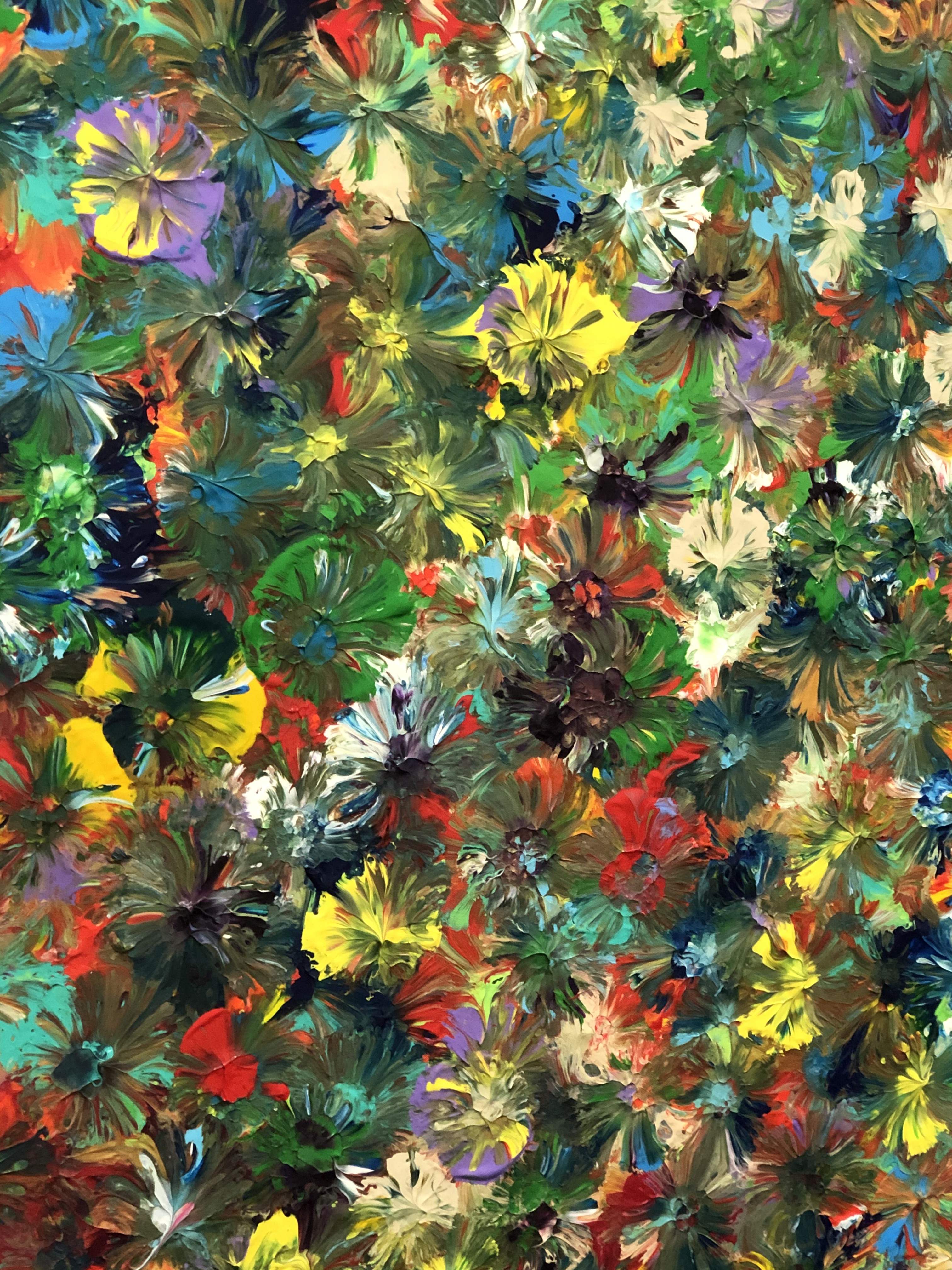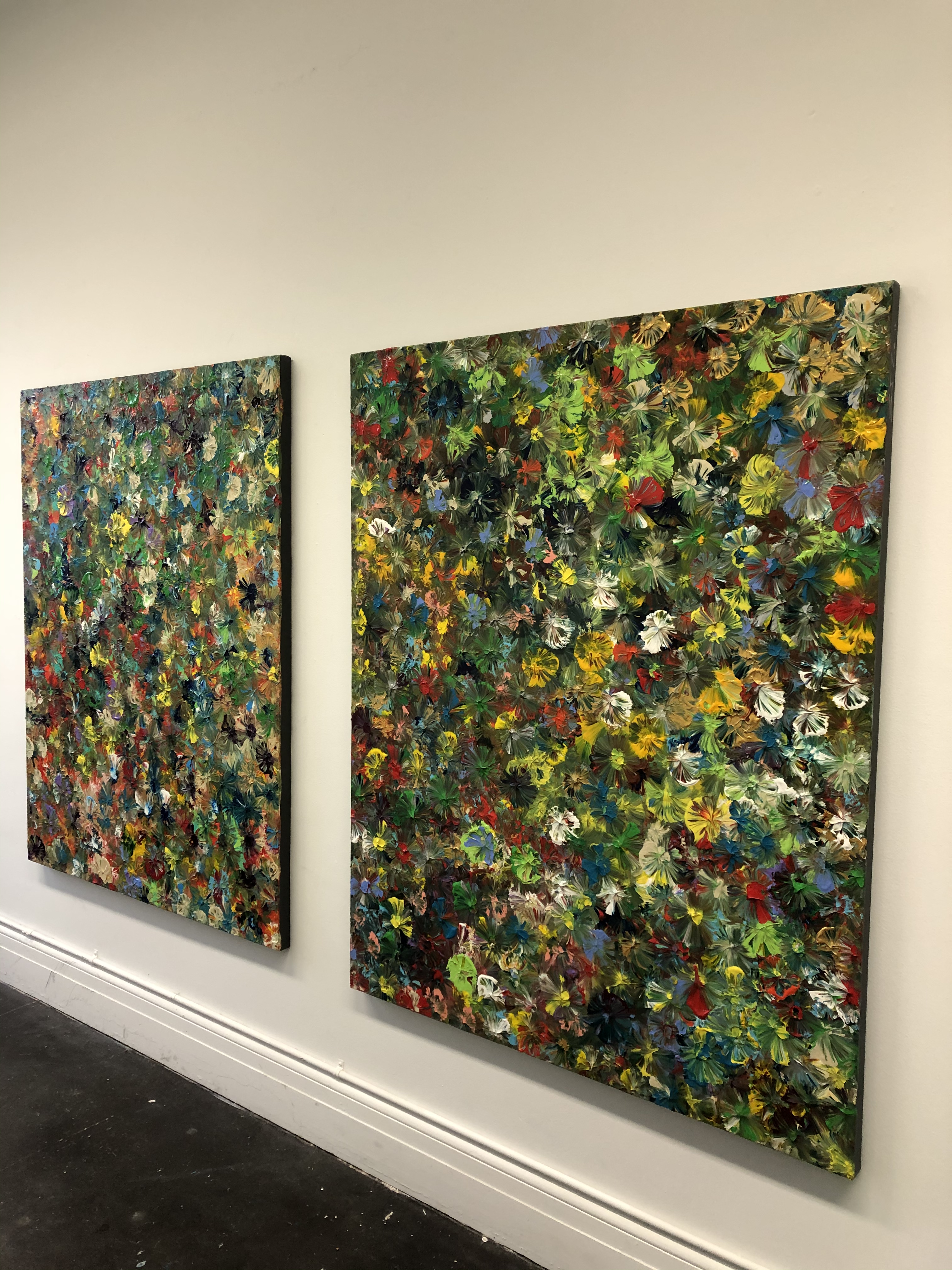 This technique started all the way back in 2006, which was different than the Colorspace and Colorstretch styles I had been working with up to that point. By then I could place my paintings into three separate categories, based on what’s on the surfaces. I started out small, then worked up to a larger piece, a piece that was gifted to a friend, but it was a technique that I wanted to keep playing with. Over the years I have made several (less than 10) of this style in various sizes. Those were all gifted as well, so I really can’t recall first hand what my style looked like back then, which is the progression to which it is today. Back in 2012, Maria Hines, my dearest friend, asked me to create paintings that would live in her third, certified organic restaurant, Agrodolce, in Fremont Wa. I said yes, and four 36″ x 48″ and two 48″x 60″ (the largest surface I have ever painted) used to reside there. They hung 6 years there. Over that time the painting technique evolved into highly textured paintings.