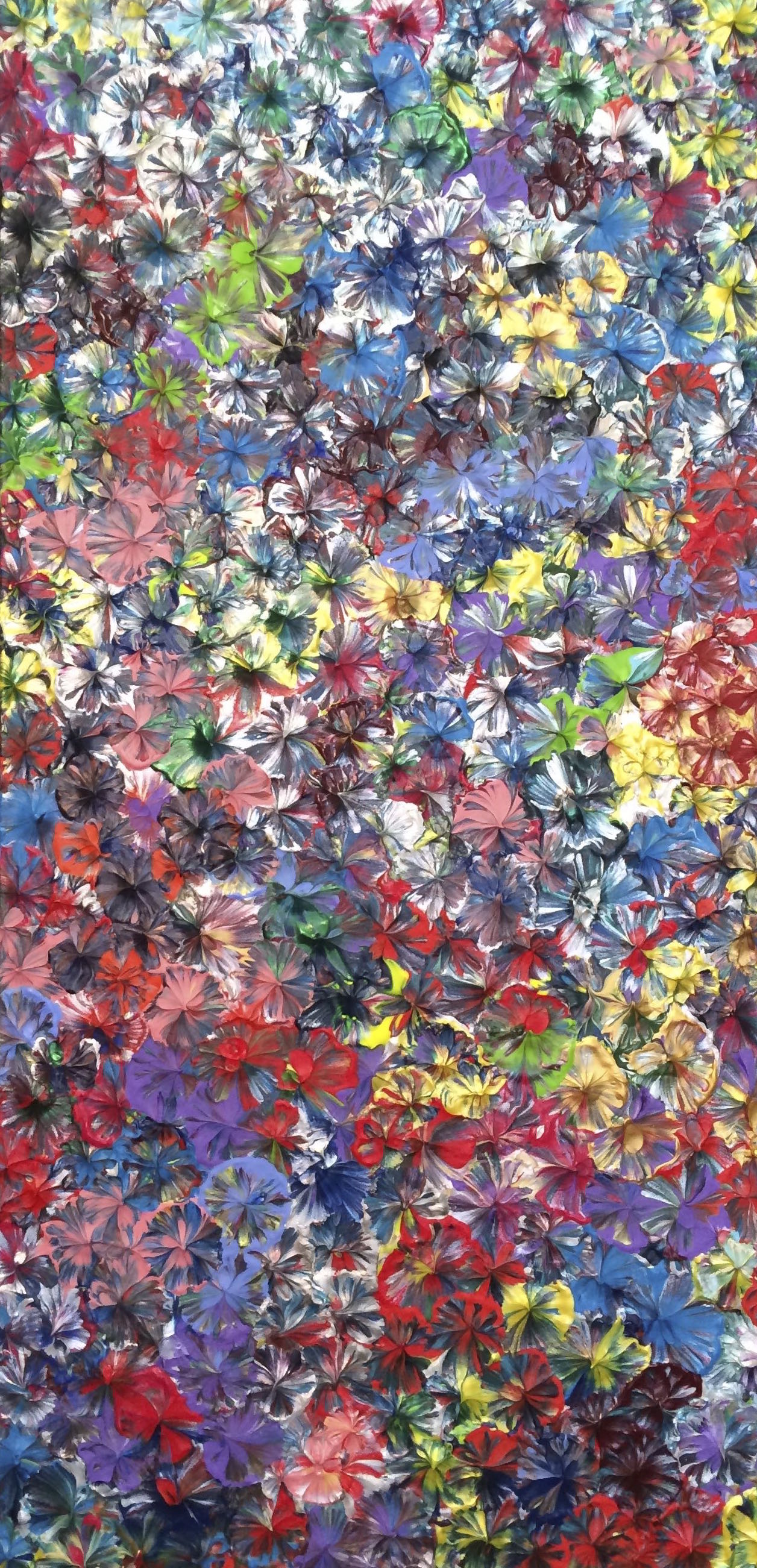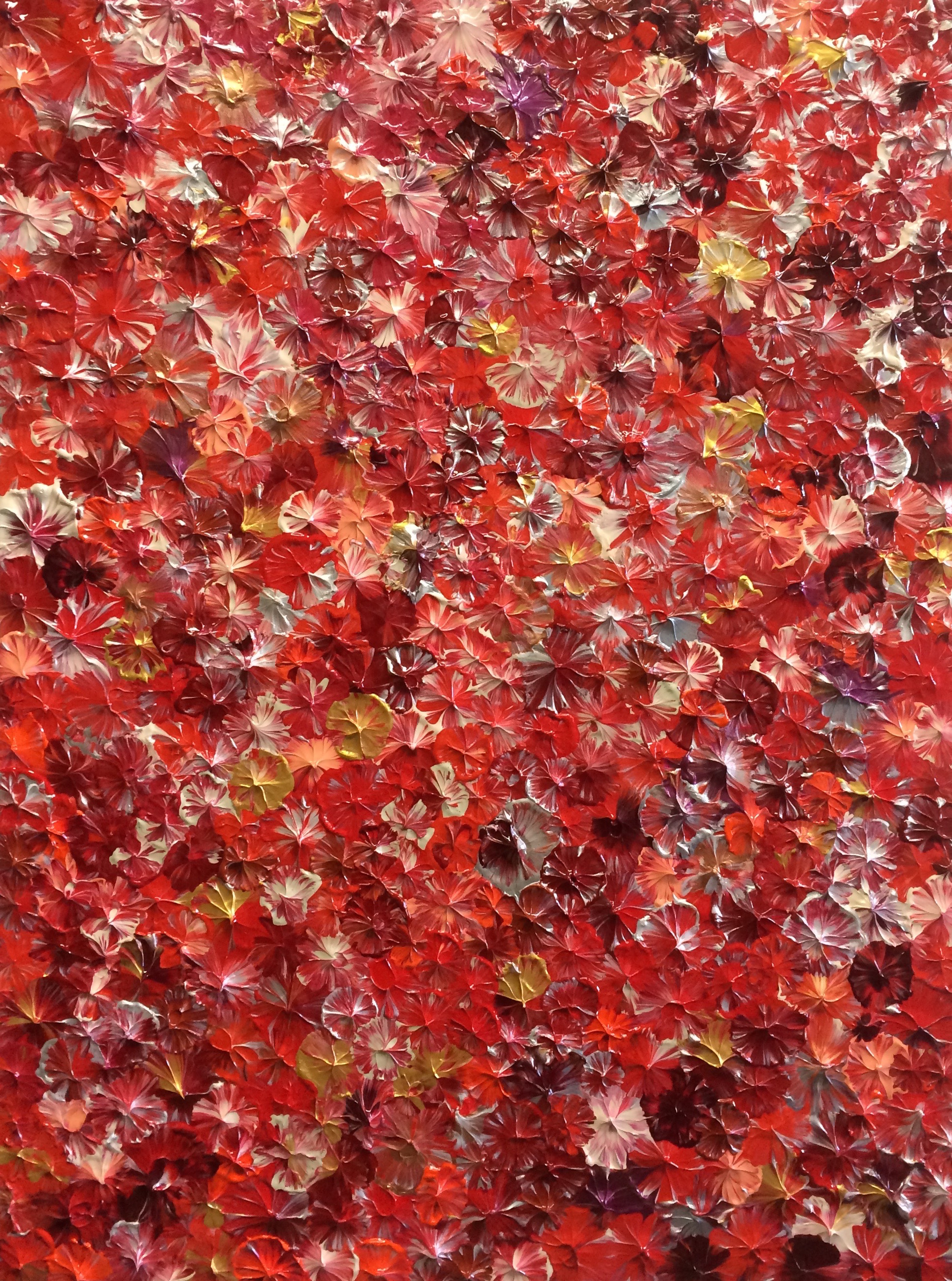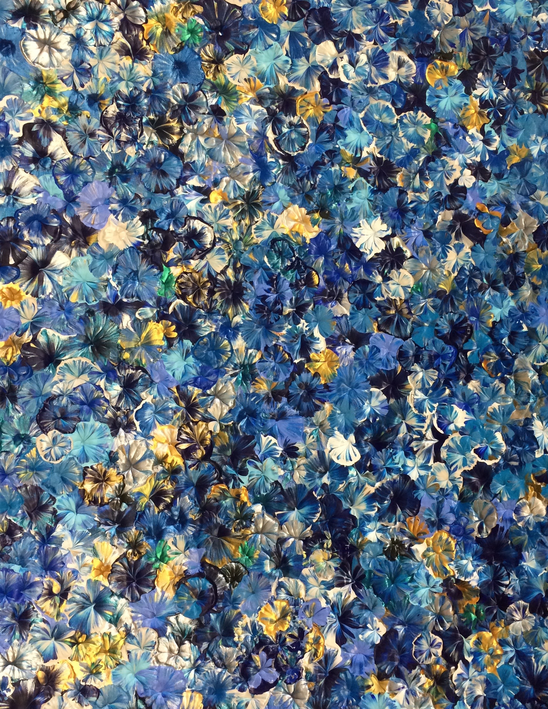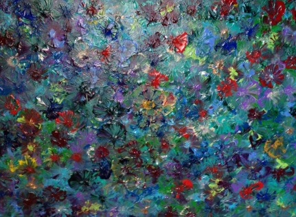 This technique started all the way back in 2006, which was different than the Colorspace and Colorstretch styles I had been working with up to that point. By then I could place my paintings into three separate categories, based on what’s on the surfaces. I started out small, then worked up to a larger piece, a piece that was gifted to a friend, but it was a technique that I wanted to keep playing with. Over the years I have made several (less than 10) of this style in various sizes. Those were all gifted as well, so I really can’t recall first hand what my style looked like back then, which is the progression to which it is today. Back in 2012, Maria Hines, my dearest friend, asked me to create paintings that would live in her third, certified organic restaurant, Agrodolce, in Fremont Wa. I said yes, and four 36″ x 48″ and two 48″x 60″ (the largest surface I have ever painted) used to reside there. They hung 6 years there. Over that time the painting technique evolved into highly textured paintings.